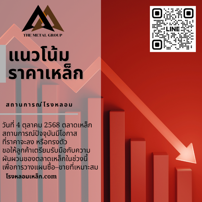 อัปเดตตลาดเหล็ก 4 ต.ค. 2568สถานการณ์ราคามีโอกาส ลง หรือทรงตัว ลูกค้าควรเตรียมพร้อมรับมือกับ ความผันผวนของตลาดเพื่อวางแผนซื้อ–ขายได้อย่างแม่นยำ